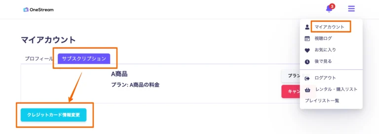 サイト右上の三本線を押す→マイアカウント→クレジットカード情報変更よりご対応ください。