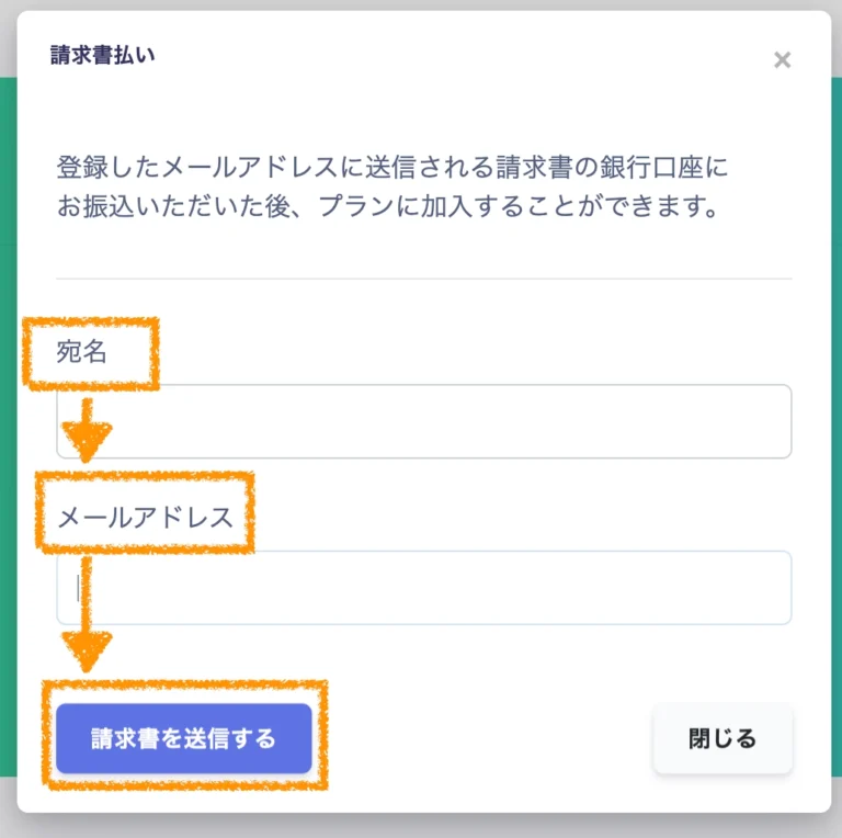 宛名・メールアドレスを記入後、「請求書を送信する」をクリック